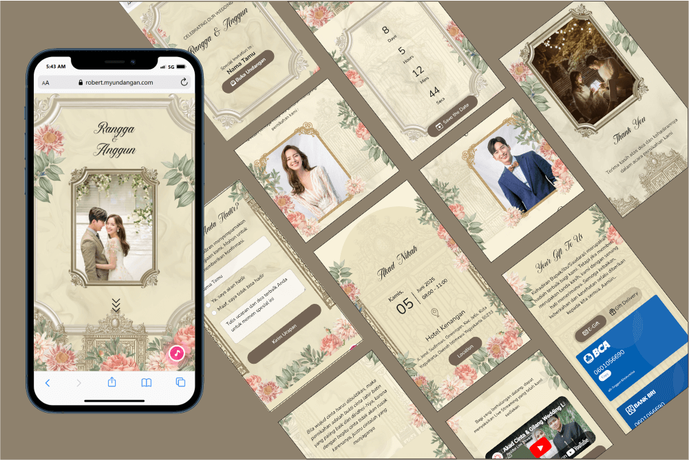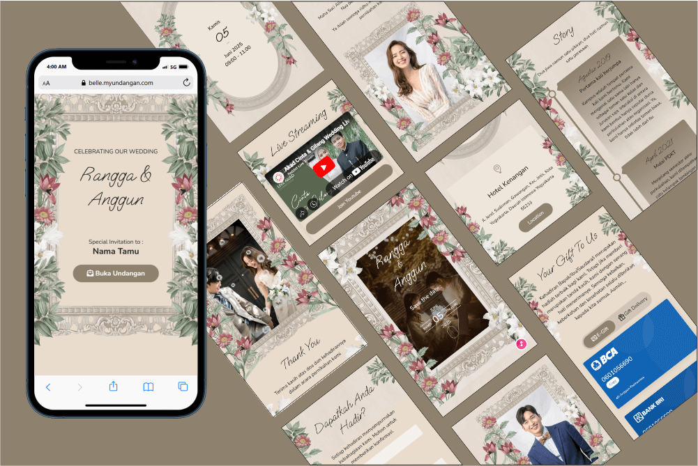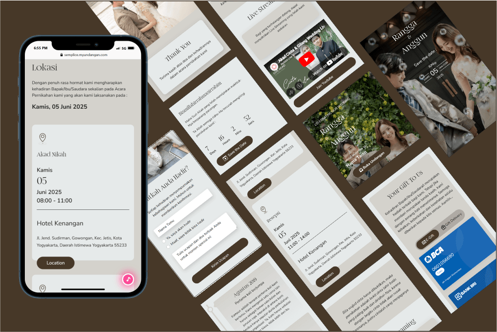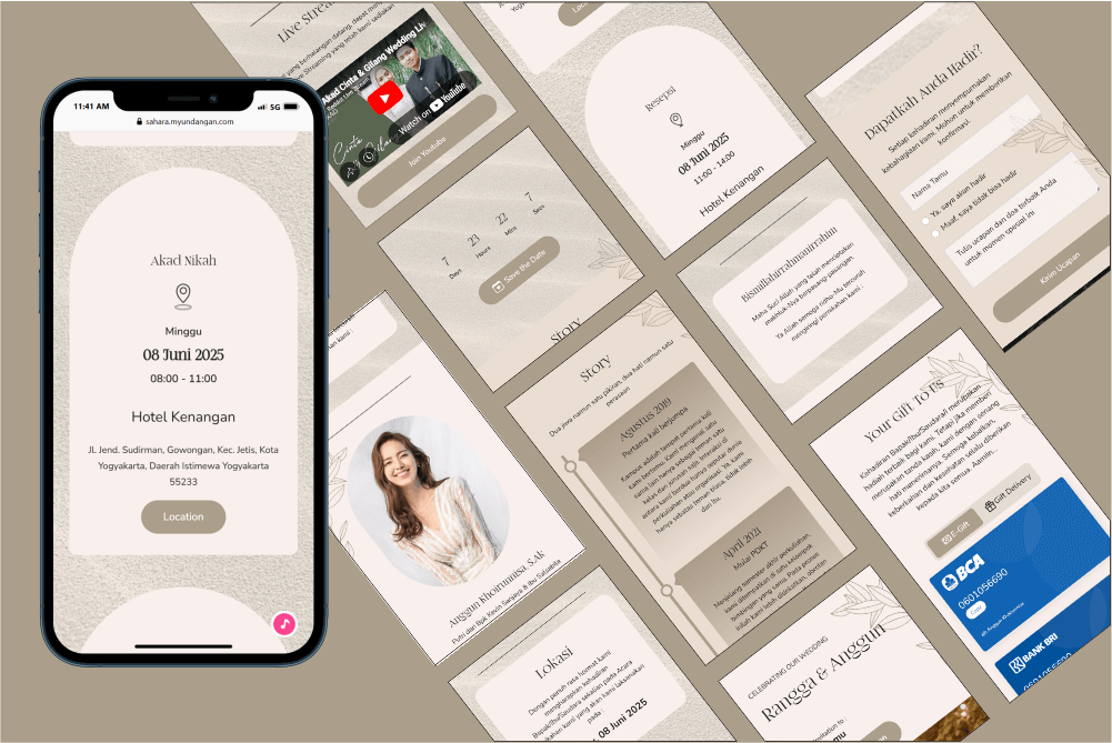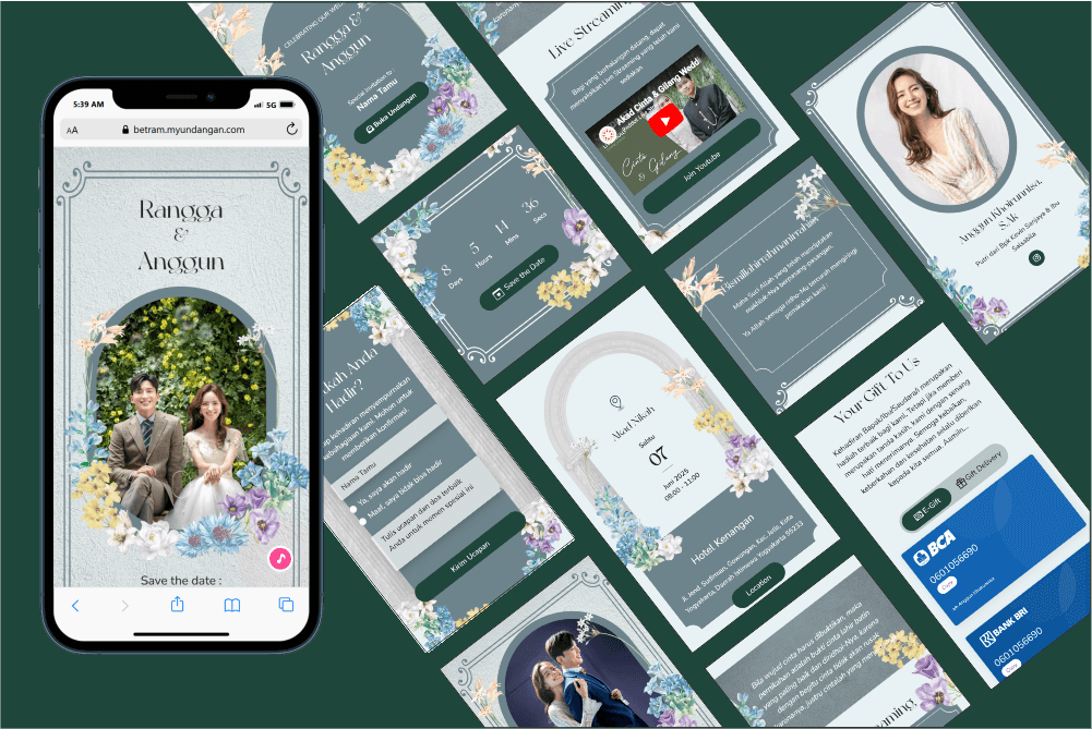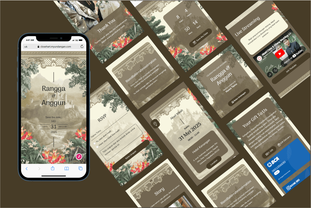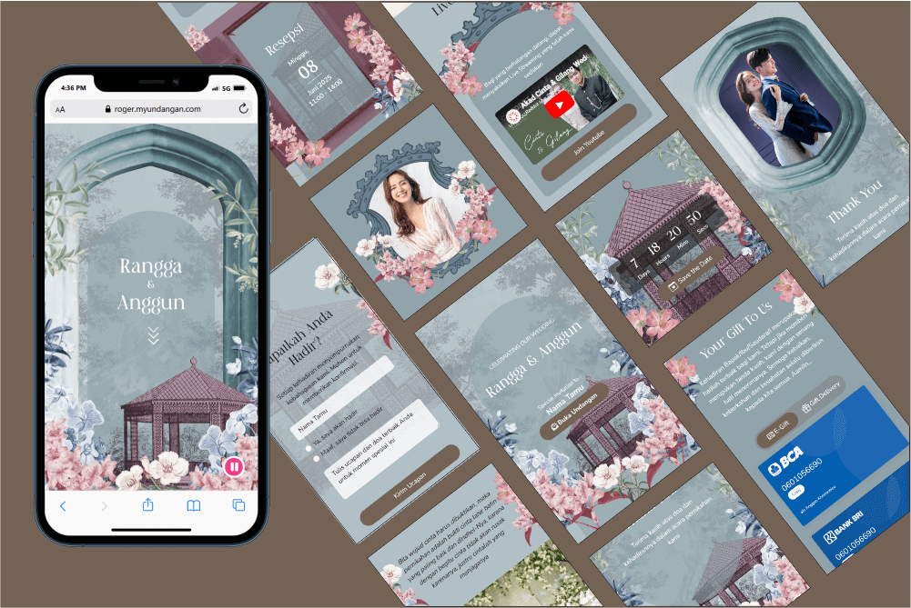 Setiap template memiliki keunikan dan ceritanya sendiri, dirancang dengan penuh perhatian dan keindahan. Temukan template yang sempurna untuk menggambarkan cinta dan kepribadian unik kamu, berikan sentuhan pribadi pada undangan pernikahan kamu yang tak terlupakan.
