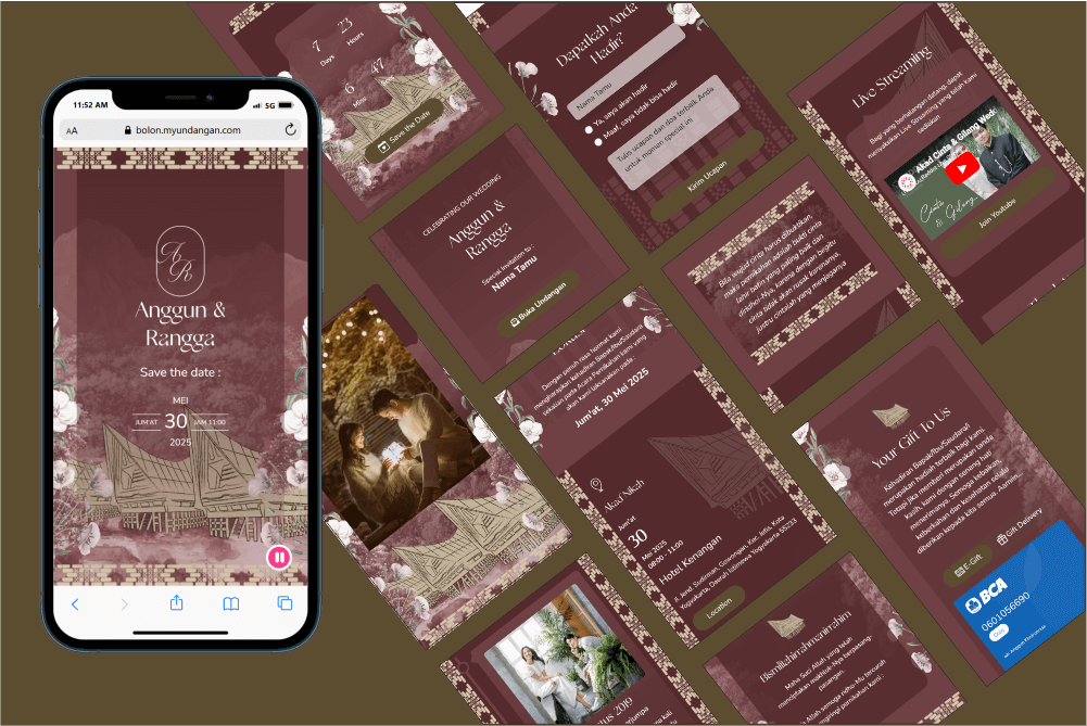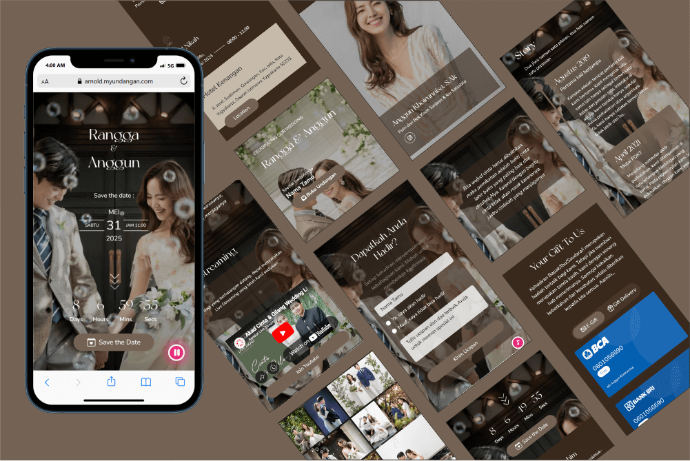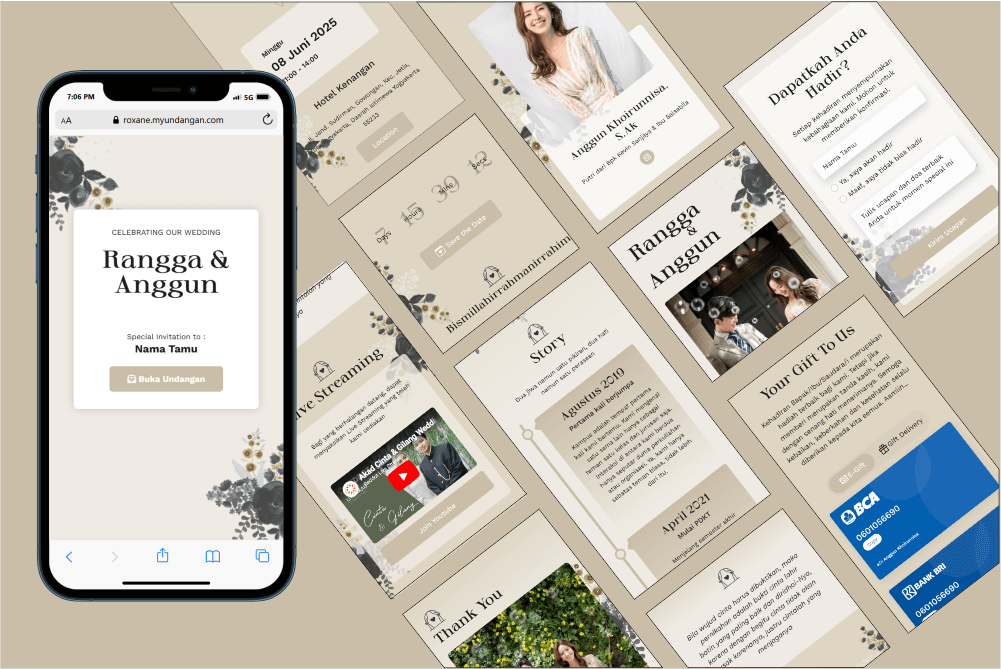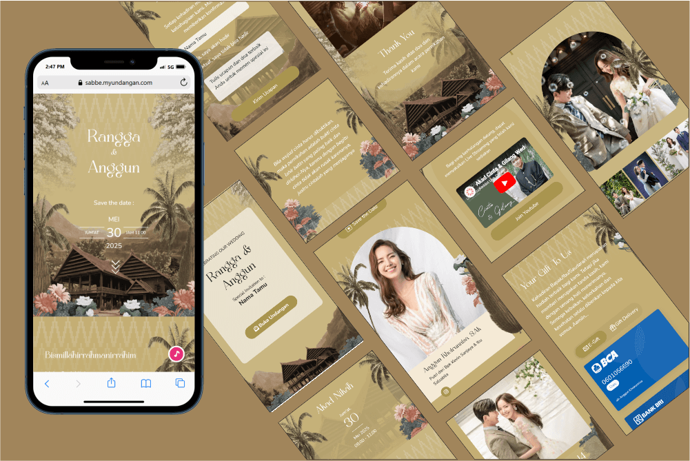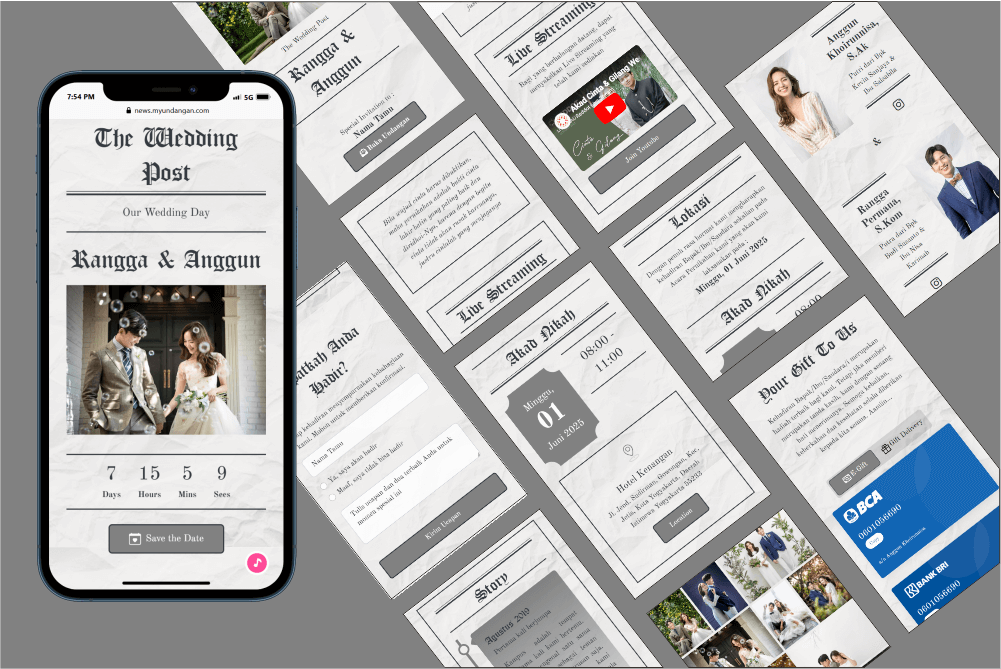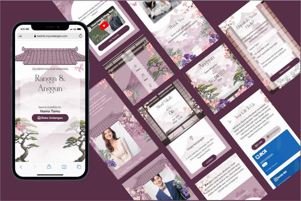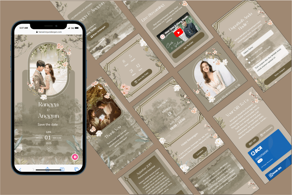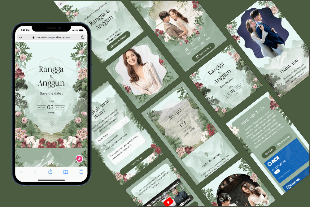 Setiap template memiliki keunikan dan ceritanya sendiri, dirancang dengan penuh perhatian dan keindahan. Temukan template yang sempurna untuk menggambarkan cinta dan kepribadian unik kamu, berikan sentuhan pribadi pada undangan pernikahan kamu yang tak terlupakan.